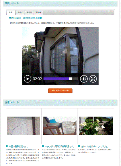 「日本空き家サポート」の管理レポートは、ホームページ上のお客様専用「マイページ」にてご覧いただきますので、インターネットに接続できる環境さえあれば世界中どこにいても空き家の様子をご確認いただけます。また、管理作業の様子を撮影した動画、画像(写真)も豊富に含まれているため、紙のレポートでは伝わりにくい、空き家の「実際」の様子をご覧いただけます!